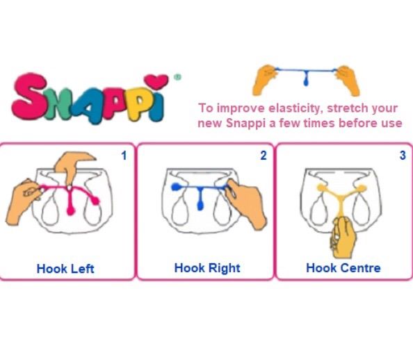 Los snappi se utilizan para sujetar las mantillas o pañales de tela que no tienen cierre propio como los predoblados
